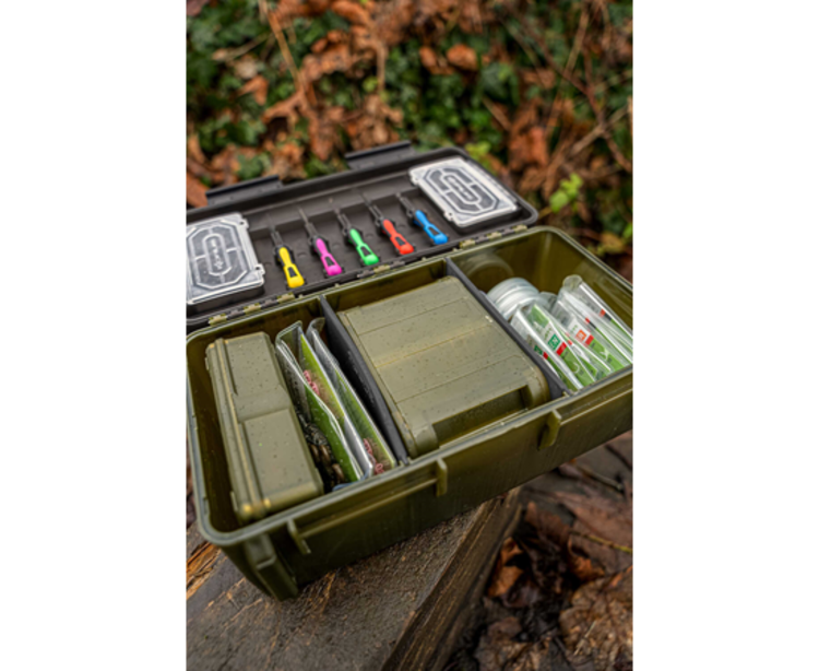BLOX is een nieuw opbergconcept voor visgerei dat volledig gericht is op de allrounder. Ontworpen om alles wat je nodig hebt op één goed georganiseerde plek te huisvesten. We hebben BLOX zorgvuldig op maat gemaakt om onmisbare items van einduitrusting te huisvesten, zoals spoelen lijn, pakketten met haken en accessoires. Er is de mogelijkheid om de speciale BITS BLOX te gebruiken als je de voorkeur geeft aan compartimenten, en om terminale uitrusting in het deksel van de doos te kunnen huisvesten. Uw Baiting Tools klikken allemaal netjes op hun plaats, terwijl de hoofddoos met verdelers kan worden aangepast aan uw behoeften. Indien gewenst kun je je RIG BLOX er ook in doen, zodat al je voorgeknoopte haaklengtes veilig zijn voor de elementen. Het is één doos die het allemaal doet!